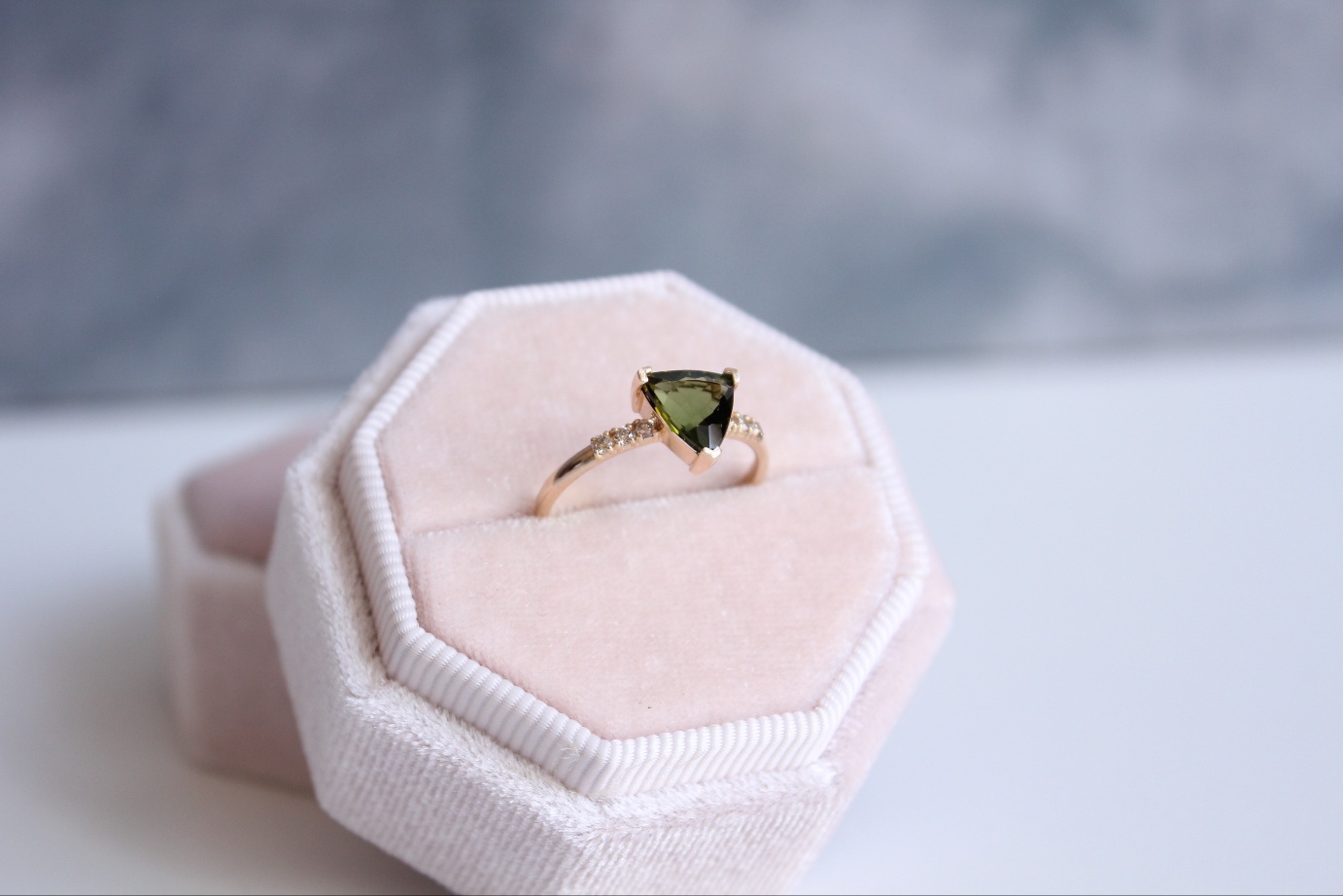 생명력을 상징하는 싱그러운 초록빛 투어멀린과 삼각형의 절제된 구조