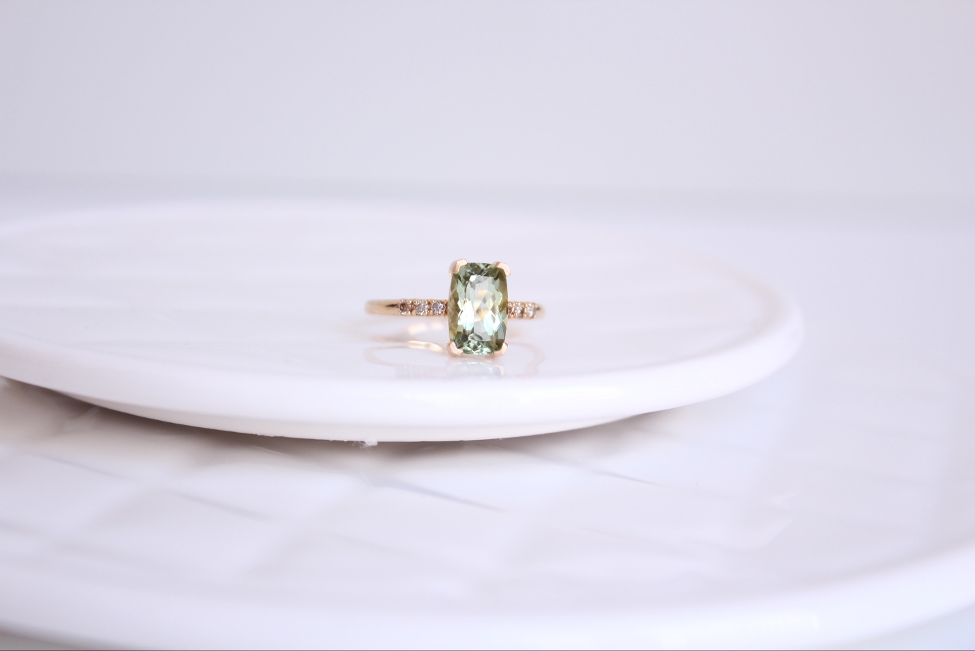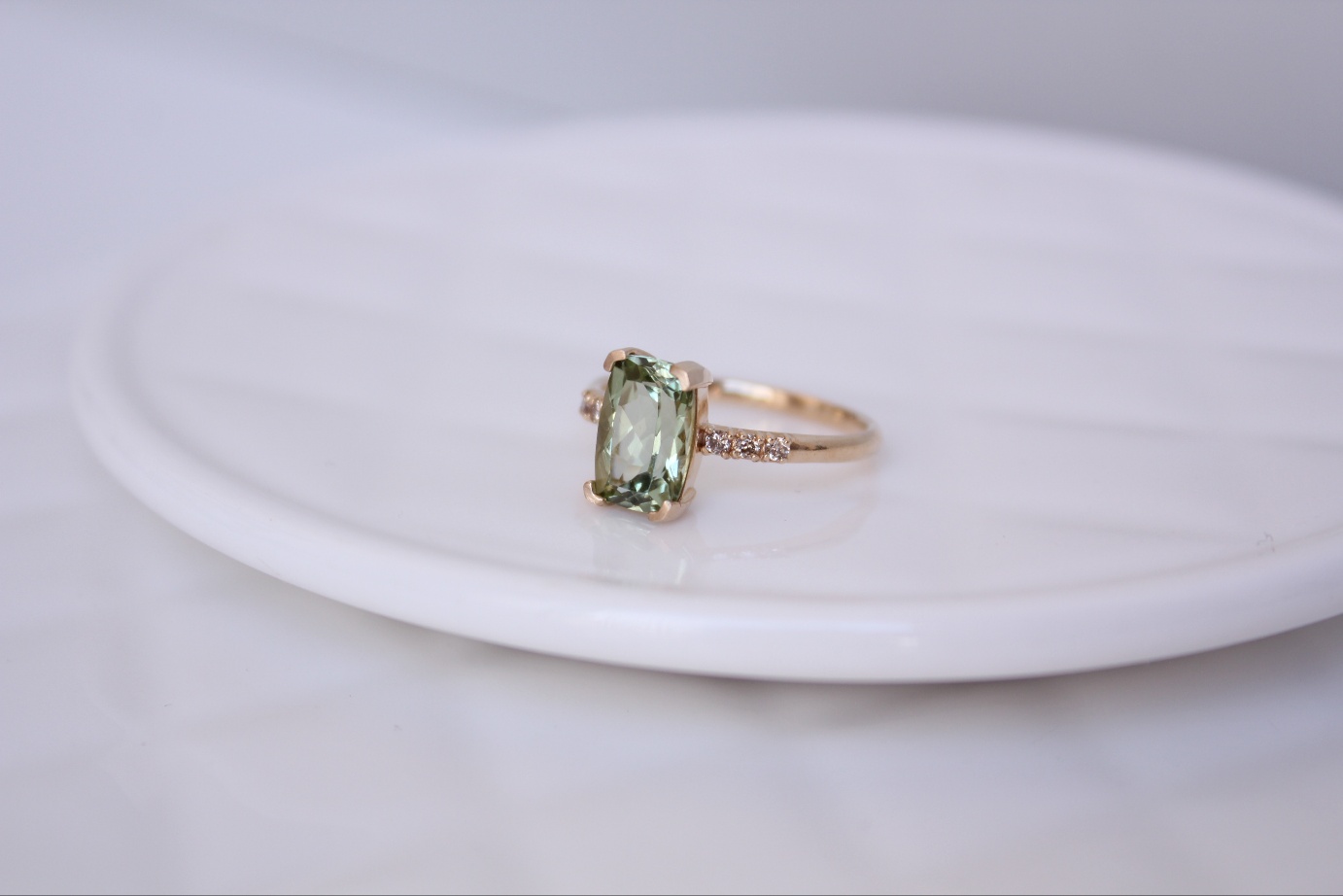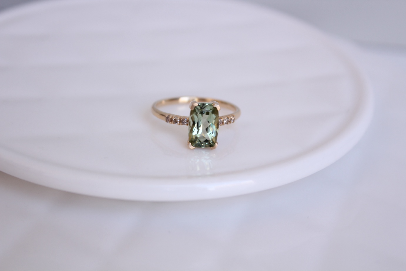 신선한 올리브빛을 품은 맑은 투어멀린 위에
