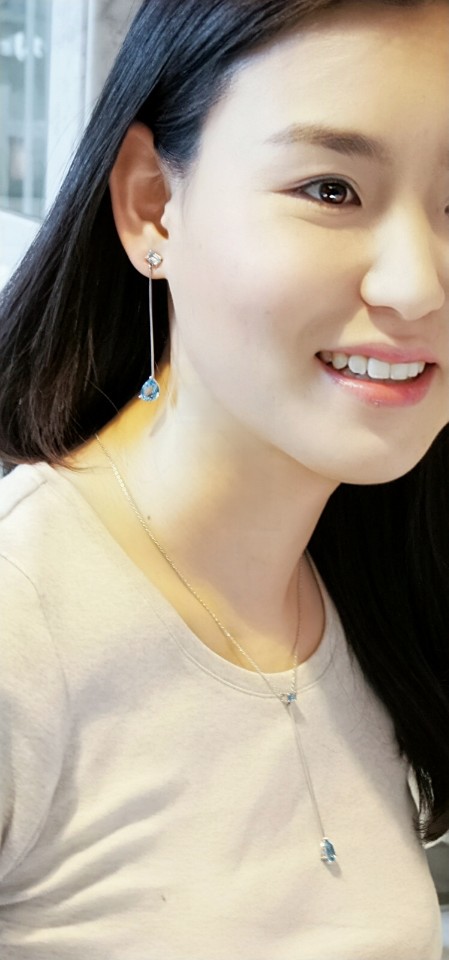 맑고 깊은 바다빛이 길게 떨어지는 이 귀걸이는 남부 이탈리아의 지중해 햇살과 바다의 리듬을 닮은 도시, 나폴리(Napoli)의 자유롭고 감각적인 분위기를 우아하게 표현합니다.