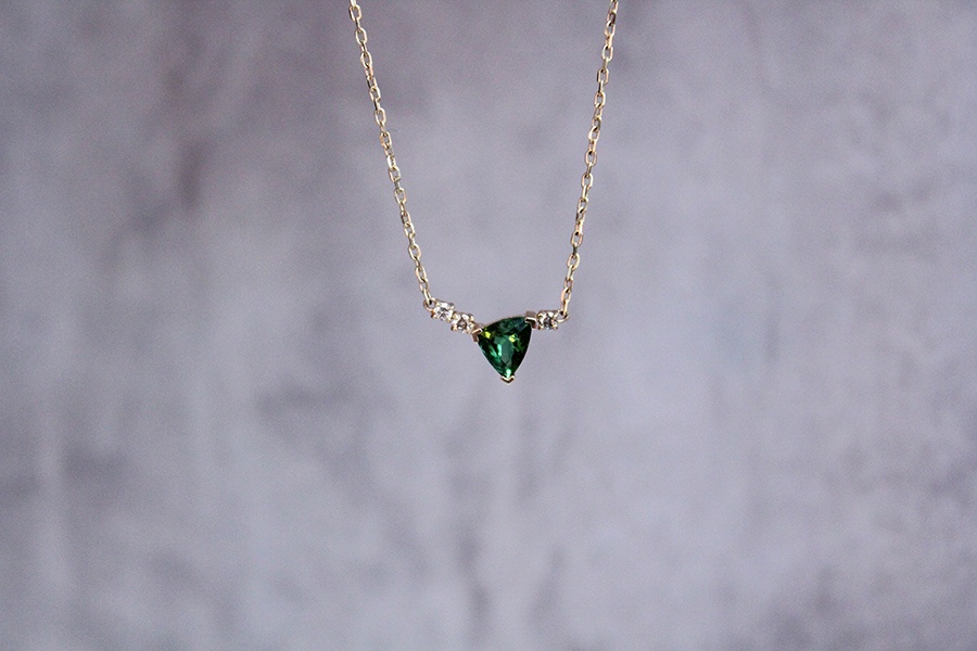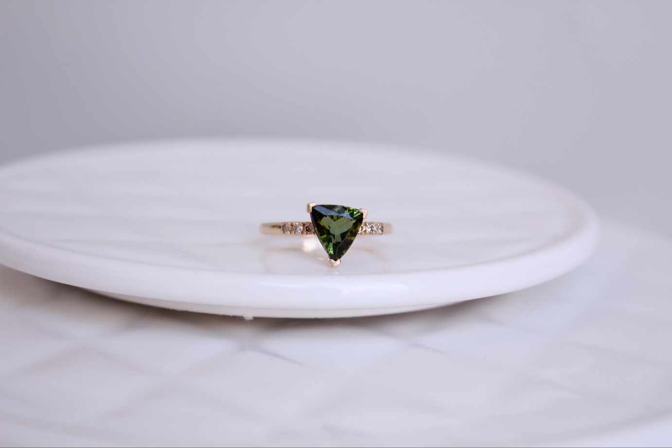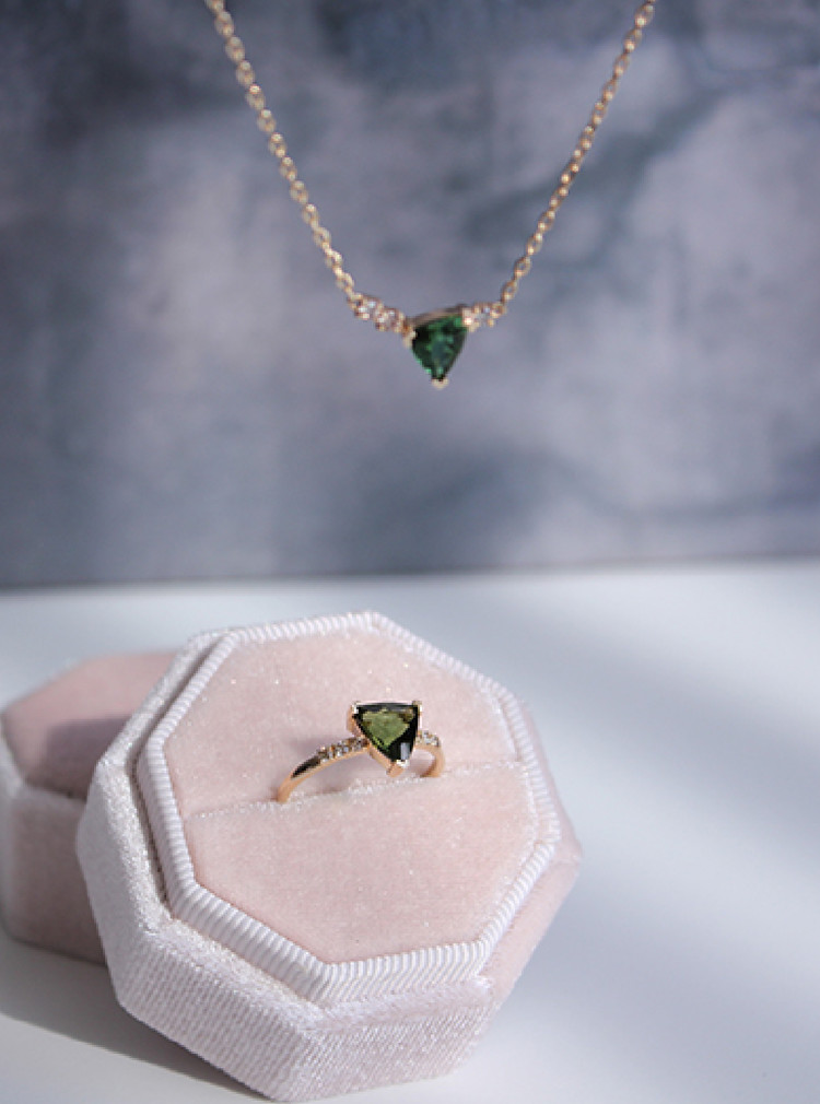 생명력을 상징하는 싱그러운 초록빛 투어멀린과 삼각형의 절제된 구조