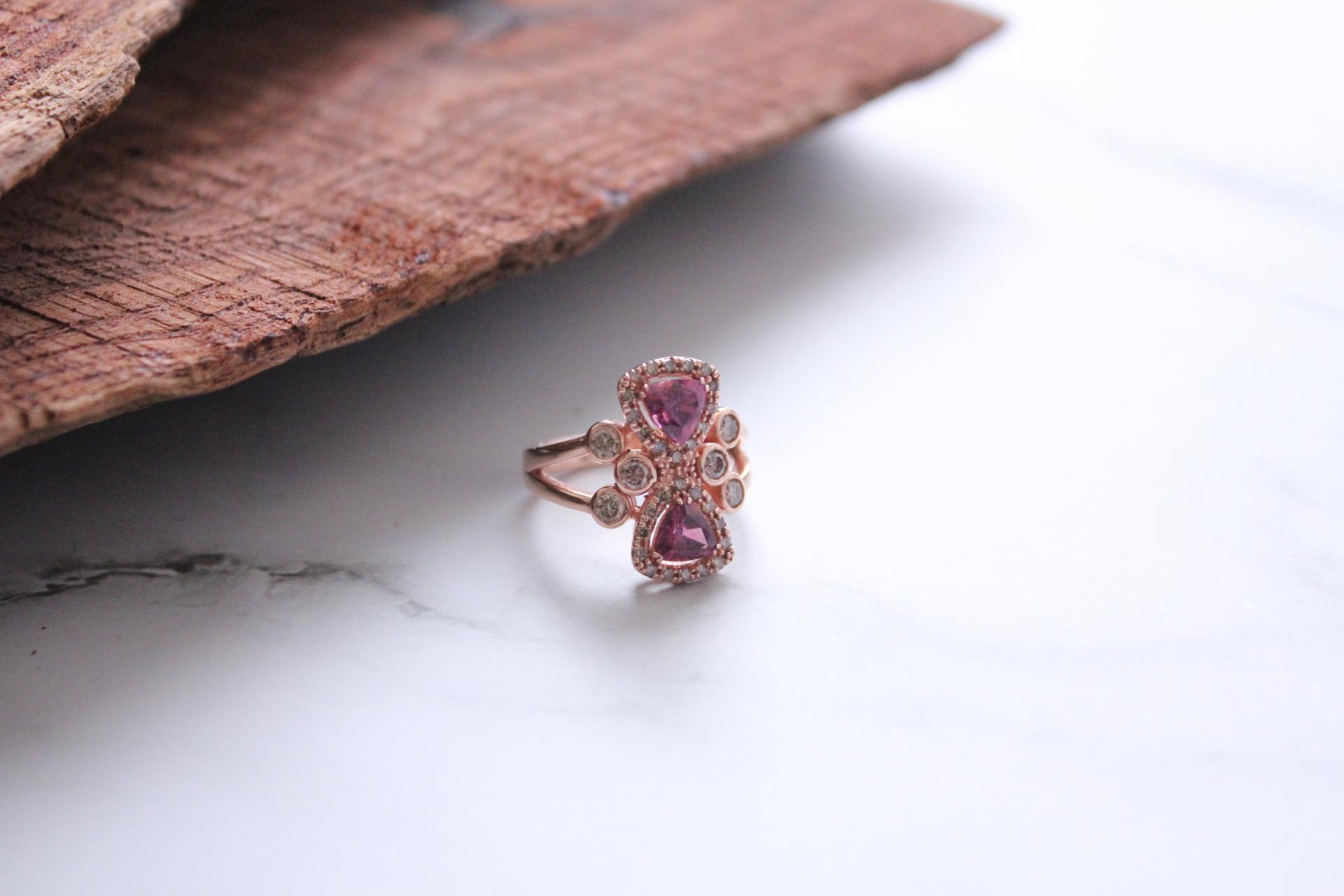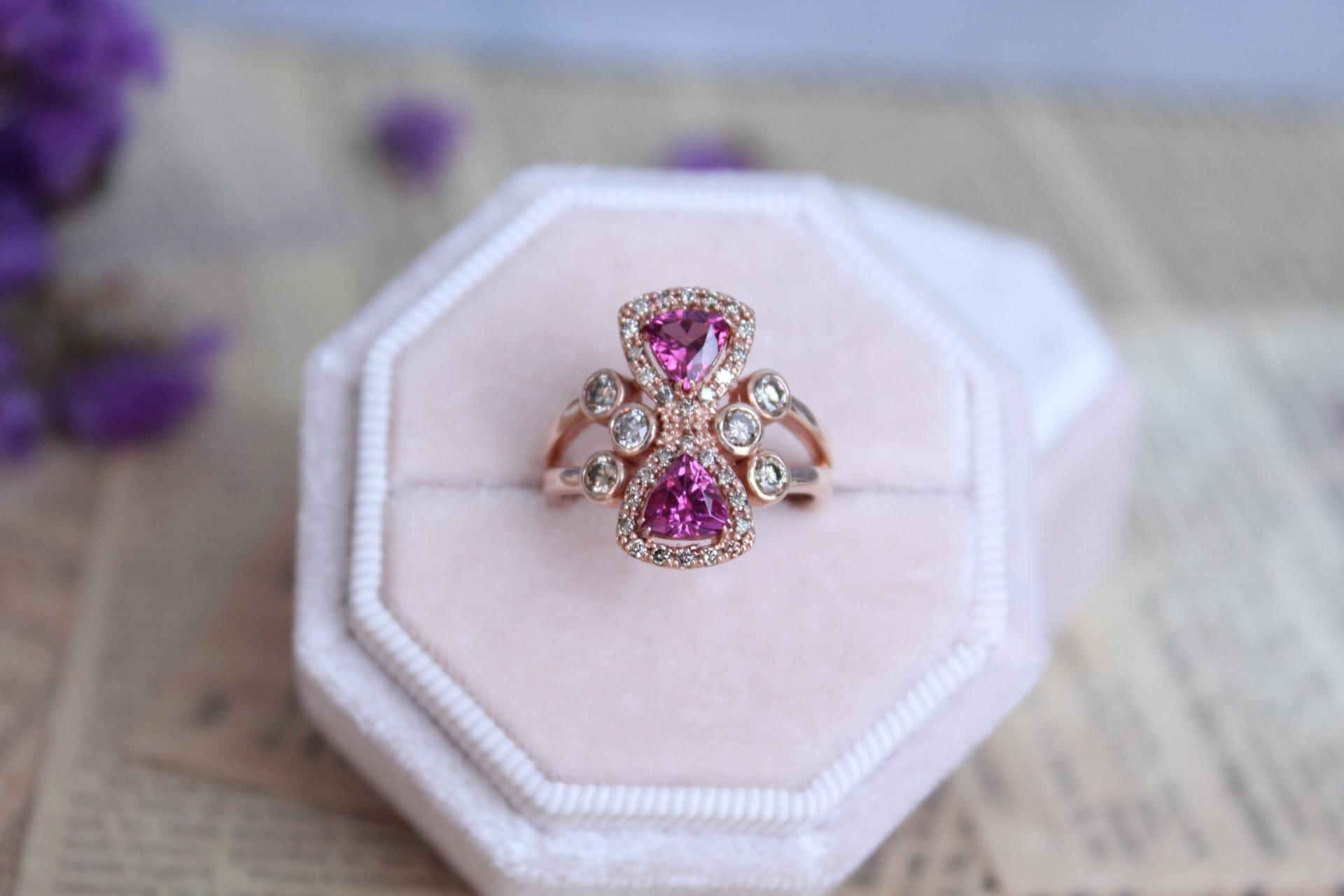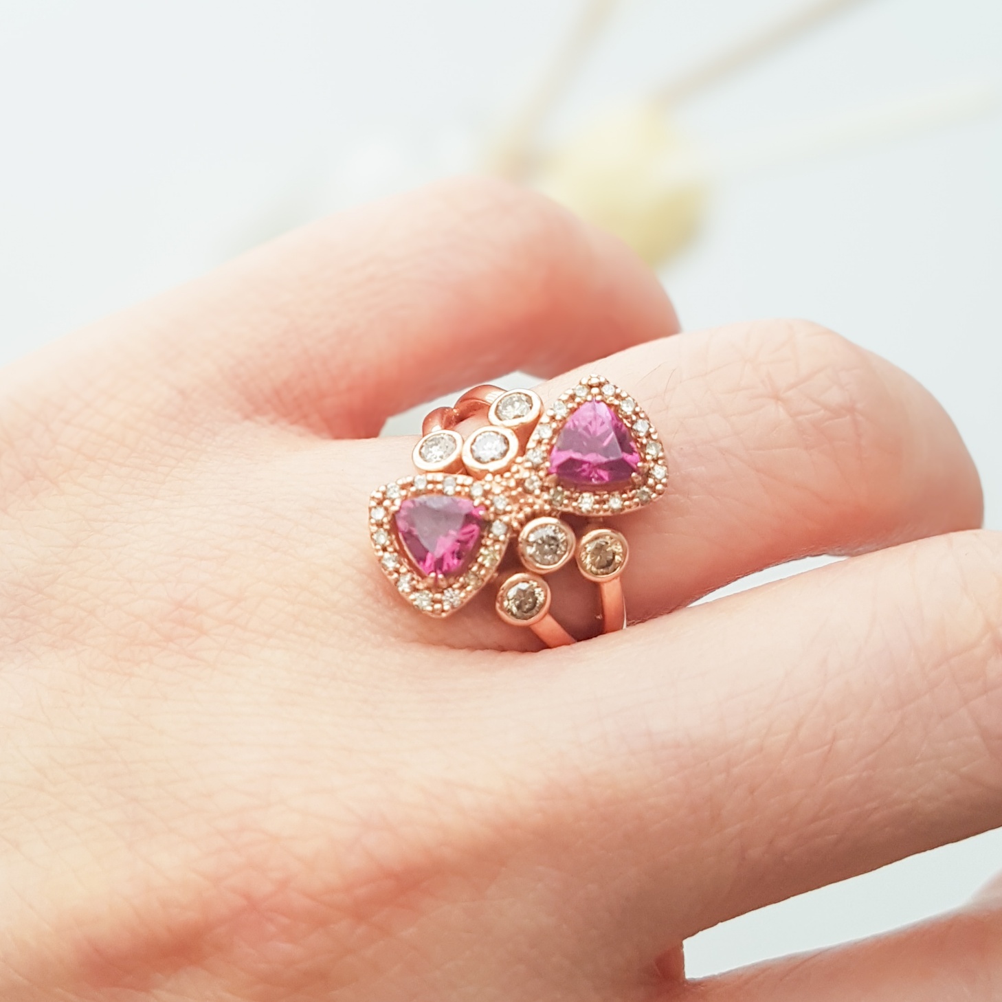 깊고 따뜻한 로즈빛은 황혼의 감성을 담고 있으며, 그 주변을 은은하게 감싸는 브라운 다이아몬드는 별처럼 반짝이며 시간의 흐름을 속삭입니다.